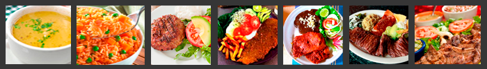 cecina enchilada, mole con pollo, chile relleno de queso oaxaca, milanesa de res o pollo, carne o pechuga asada
